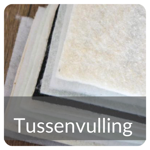 Wij leveren een ruime sortering tussenvulling (standaard 240 cm breed, maar ook pakketten van 310 x 310 cm), maar u mag ook uw eigen tussenvulling meeleveren. De tussenvulling dient altijd 10% groter te zijn dan de quilttop. Liefst geen vulling uit een pakket (is te gekreukt voor ons werk). Bij 100% katoenen tussenvulling moet er een scrimlaag op zitten om uitzakken en schuiven te voorkomen. Tussenvulling niet voorwassen (geeft vaak "zakkers"). Reststukken worden altijd door ons meegegeven. Ga naar tussenvulling als u uw tussenvulling wilt kopen.